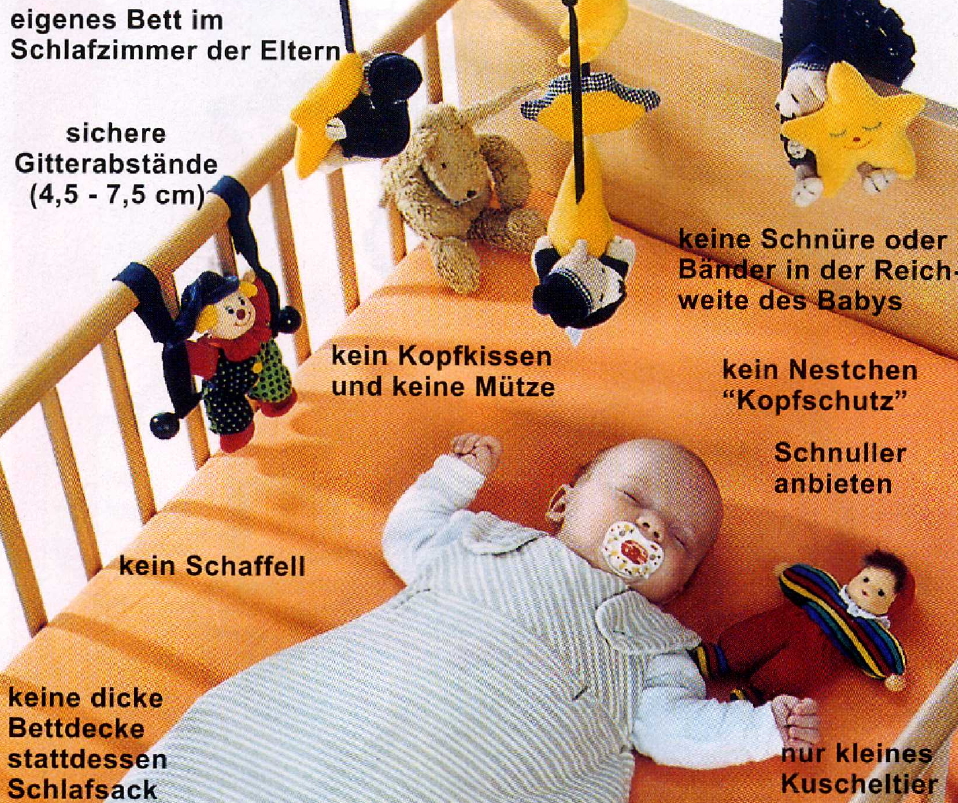 - Lassen Sie den Säugling im elterlichen Schlafzimmer schlafen - aber in einem eigenen Kinderbett.